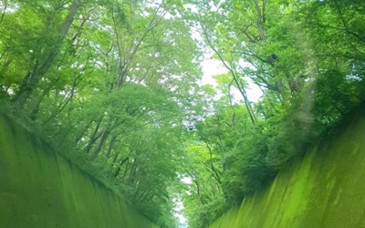 이끼터널은 오래전 일제강점기에 기찻길로 사용했던 곳으로, 요즘엔 철로를 걷어내고 양쪽 언덕에 방벽을 세워둔 곳인데 시간이 흘러 자연스럽게 나무가 우거지고 옹벽에 이끼가 자라면서 나무들이 터널처럼 하늘을 가리며 지금의 모습을 가지도록 되었다고 합니다. 참그러므로 이끼터널과 유려하게 사진을 찍을 수 있는 시기는 녹음이 무성 해지는 5월부터 가을물이 들기 전 10월까지라고 하더라고요.