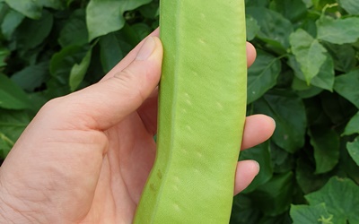 작두콩의 이름은 영어권에서도 꼬투리 모양이 칼처럼 나타나서서 소드 빈이라 불러요. 작두콩은 우리가 곧잘 아는 다른 콩들과는 달리 그 줄기가 10m에 달할 수준으로 자라며 한해살이 덩굴성 식물이어서 성장 속도도 아주 빠른 것으로 알려져 있고요. 작두콩의 원산지는 열대성 기후 지역이지만 우리나라에서도 두 가짓수를 재배하더라고요. 하나는 콩 색이 붉은색인 품종과 하얀색인 품종이고요. 꼬투리 모양 외에 작두콩의 특징은 크기인데 작두콩은 덩굴도 크게 자랄 뿐더러 알맹이도 큽니다.