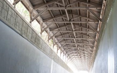 바다 양쪽을 막는 방파제를 설치하여 출현한 공간에 거푸집을 설치하고 콘크리트를 타설하여 터널을 만든 뒤 연거푸 방파제를 철거하여 완공했답니다. 터널 입구는 목조 기둥에 왕대공 트러스 구조입니다. 아스콘으로 포장된 터널의 경사면을 따라 내려가면 바가 수면쯤에서부터 전등이 켜져 있으며 적당히 더 내려가면 굽이를 트는 지점부터 오른편 벽면에 와이드 색깔 홍보판 12개중 3개의 홍보판이 그 당시의 역사를 말없이 선뵈고 있고요.