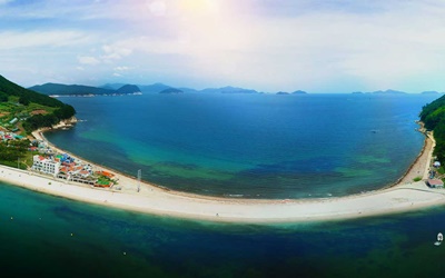 백사장이 길게 뻗어나가다 잘록해진다고 하며 모래가 부드럽고 수심이 얕은 데다 수온이 알맞아 어린이들과 여행 가기 좋은 곳이라고 합니다. 따라서 근처에 낚시하기 좋은 곳으로도 유명하다고 하고요. 또한 이순신 장군이 왜적과 싸움에서 승리한 후 보배로운 곳이라고 부르는 의미에서 비진도라는 이름이 붙었다고 알려져 있고요. 그러기 때문에 이곳은 해안선 길이가 9km이라고 합니다. 그리고 미인도라고 일컬어지는 비진도는 통영항에서 13km 떨어진 곳으로써 한산도, 소맬물도, 대매물도와 근접한 곳이라고 알려져 있다고 합니다.
